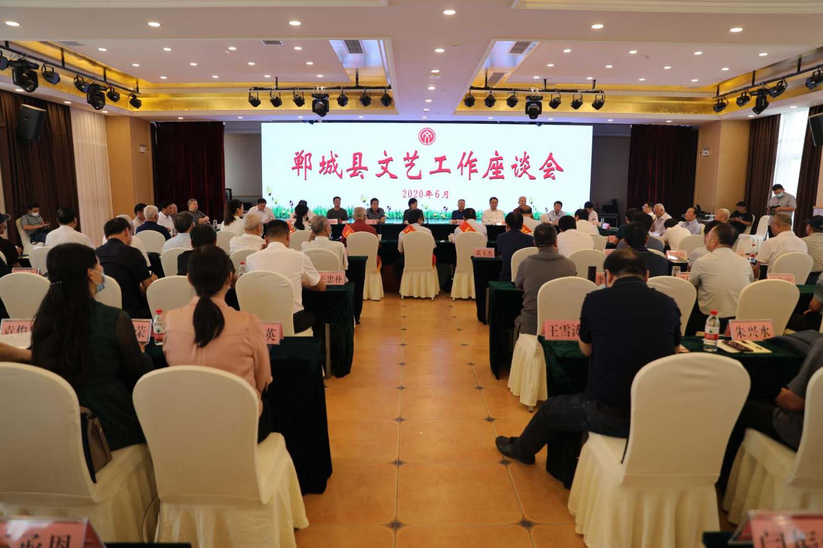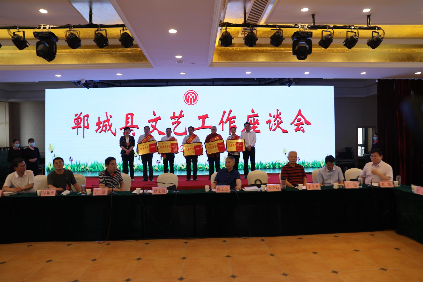 6月2日下午,鄲城縣首屆文藝工作座談會召開,武警河南省總隊原總隊長、中國書法家協(xié)會會員、河南省長城書畫院院長曹云忠,解放軍301醫(yī)院原醫(yī)技部政委、中國書法家協(xié)會理事、中國硬筆書法協(xié)會副主席丁謙,河南日報報業(yè)集團書畫院院長、東里學社社長侯和平,原河南省質(zhì)量技術監(jiān)督局副局長、鄭州鄲城商會名譽會長梁金光,中國美術家協(xié)會會員、周口市美術家協(xié)會原副主席段忠勇應邀出席座談會。周口市人大常委會副主任、鄲城縣委書記羅文閣出席會議并講話,縣領導李全林、李建軍、王偉、吳青鋒、劉輝、王巖等參加座談會。