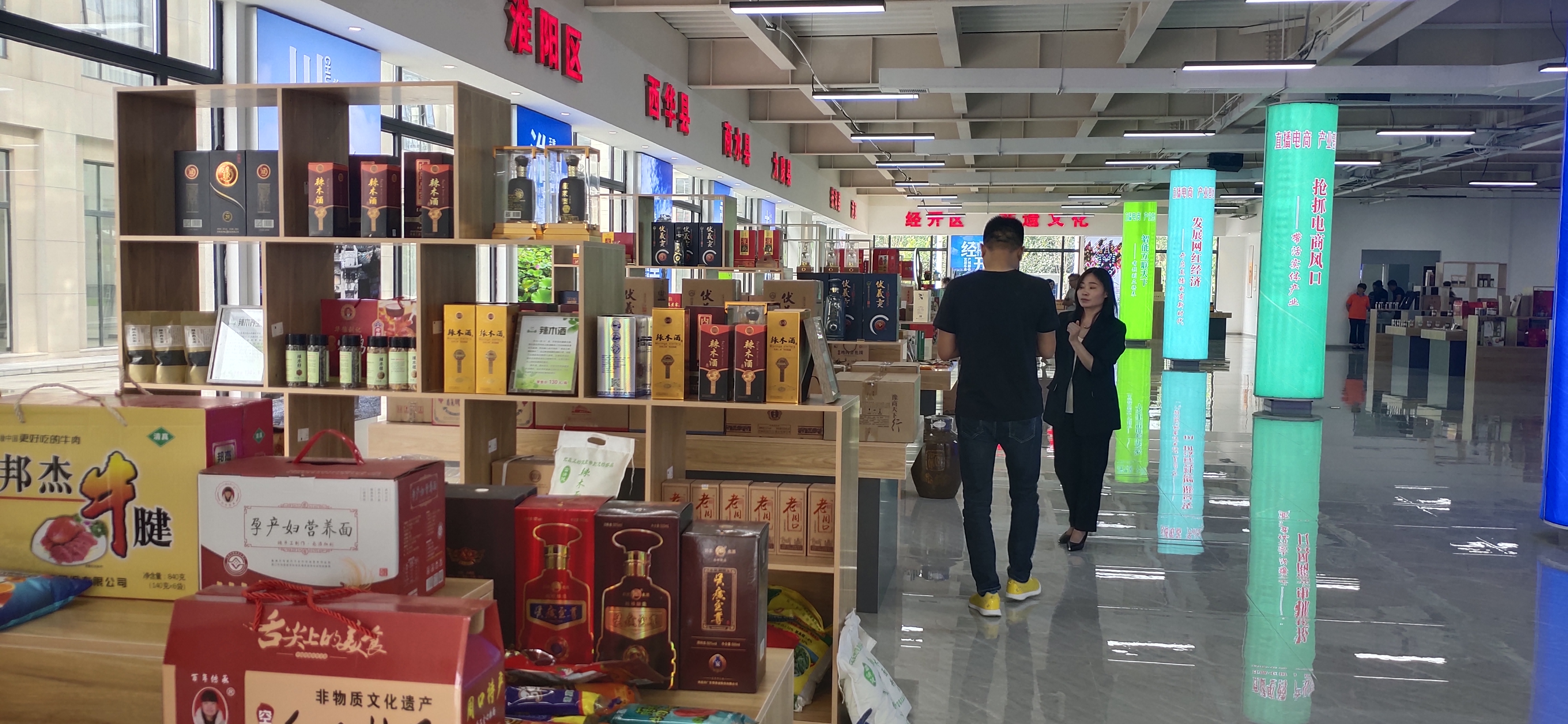 中心展廳面積達(dá)1000多平方米,按照不同縣(市、區(qū))劃分為十幾個(gè)區(qū)域,集中展示邦杰牛肉、伏羲貢酒、鄧城豬蹄、汝陽劉毛筆、三川豫龍復(fù)合肥等周口產(chǎn)品。這些產(chǎn)品都是來自各縣(市、區(qū))等地農(nóng)工副土特產(chǎn)品以及非遺產(chǎn)品。“我們將通過抖音、快手等視頻平臺(tái),把這些產(chǎn)品銷往全國(guó)各地?!?該基地負(fù)責(zé)人、周口東方會(huì)展商會(huì)會(huì)長(zhǎng)于海崗說。