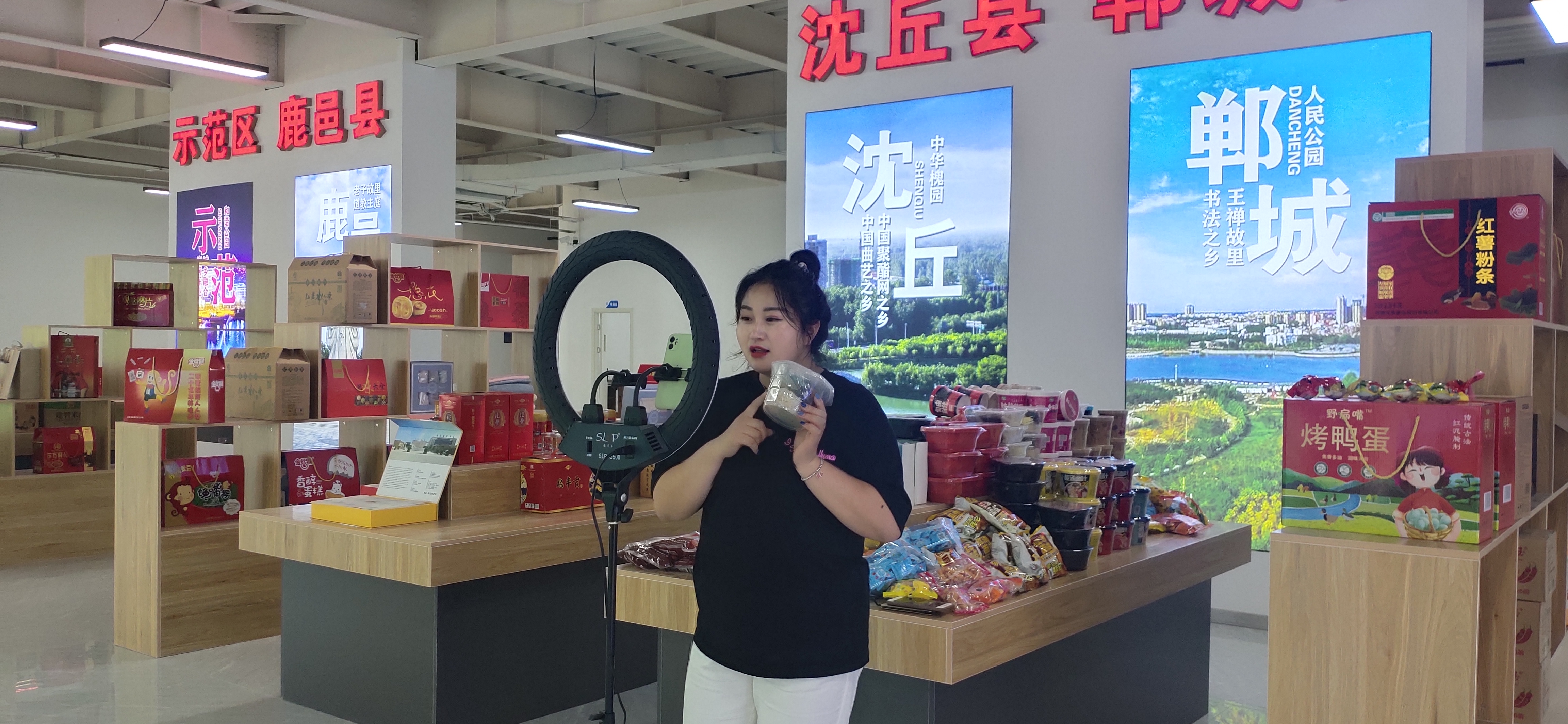 盛夏時(shí)節(jié),記者走進(jìn)周口市直播電商產(chǎn)業(yè)基地,只見偌大的中心展廳內(nèi),一個(gè)個(gè)“網(wǎng)紅”正在現(xiàn)場(chǎng)直播帶貨,宣傳推介周口特色產(chǎn)品。