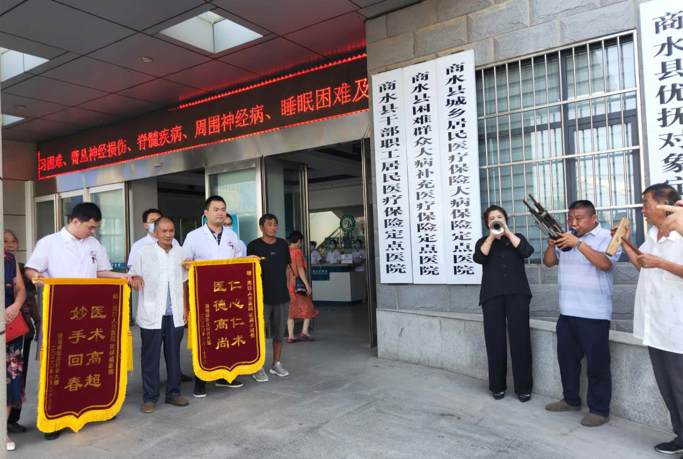 “醫(yī)術(shù)醫(yī)風(fēng)醫(yī)德好,俺給好醫(yī)生送錦旗”,歡快高昂的嗩吶聲響徹周口人合醫(yī)院急診部門前,嗩吶手以歡快的音樂表達(dá)著感激的話語(yǔ),8月27日上午10時(shí),來(lái)自商水縣固墻鎮(zhèn)張莊村的許九德老人帶著家人和一班嗩吶手,來(lái)到周口人合醫(yī)院送來(lái)錦旗,以農(nóng)民最樸實(shí)的方式表達(dá)自己的謝意。