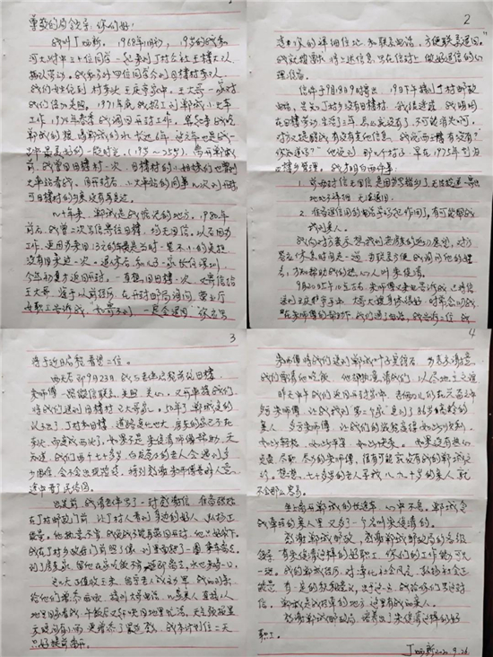 交談中,朱俊清得知寄信人丁阿姨是一名下鄉(xiāng)知青,收件人王先生是她插隊時的房東。從1968年至1971年底插隊時,丁阿姨與河南大學(xué)附屬中學(xué)的4位同學(xué)曾居住在王先生家,一住就是三年。三年間,王先生一家視她們?nèi)缬H人,在生活上為她們提供了很多力所能及的幫助。1971年,她調(diào)至鄲城縣小火車站工作;因工作需要,1974年她又調(diào)回老家開封。沒想到,這一別就是46年。