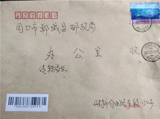 “多虧朱師傅,正是在他的傾情幫助下,才圓了我的尋親夢,讓我在有生之年還能與闊別46年的老房東相見。感謝鄲城郵政,更感謝丁村支局投遞員朱俊清!”9月27日,鄲城縣郵政分公司總經(jīng)理石磊收到了一封感謝信。信中,開封市民丁阿姨講述了鄲城縣丁村郵政支局投遞員朱俊清,幫助她尋親的故事。
