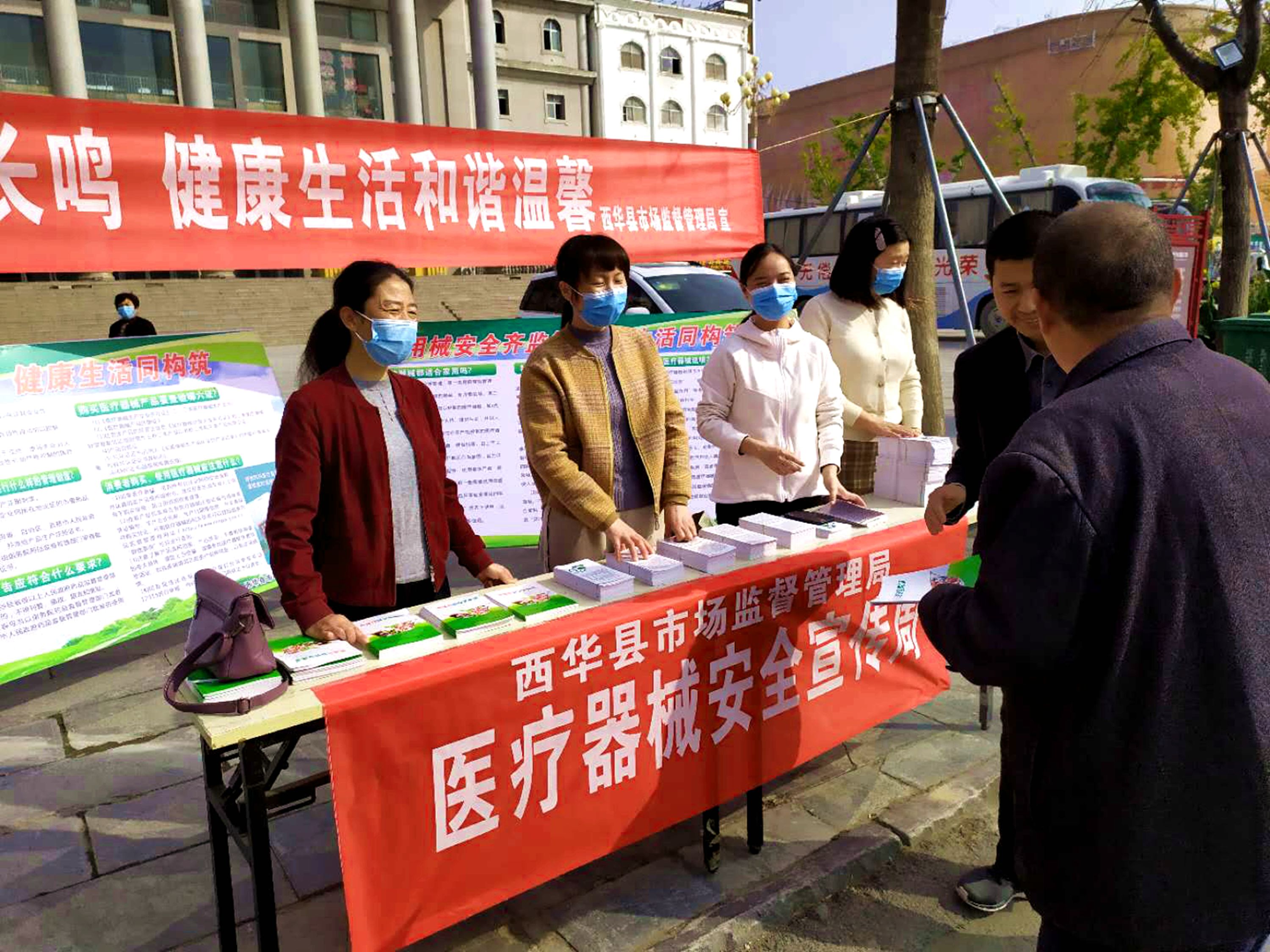 當(dāng)日,西華縣市場監(jiān)管局在縣城女媧廣場開展醫(yī)療器械安全宣傳周活動。工作人員一大早就來到宣傳活動現(xiàn)場,掛條幅、擺桌子、設(shè)展板,忙得不亦樂乎。
