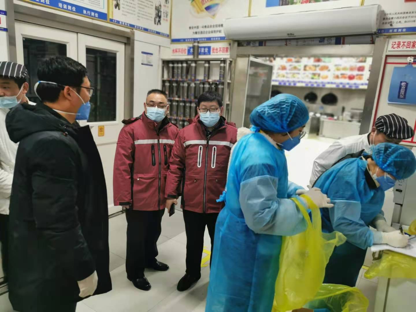 為助力第一屆周商大會圓滿成功,市衛(wèi)生健康委抽調(diào)近百名調(diào)精兵強將組成衛(wèi)生保障專班開展衛(wèi)勤保障工作。圖為工作人員在市委黨校迎賓館和體育賓館餐廳對后廚人員做核酸檢測及開展冷鏈?zhǔn)称废尽?/p>