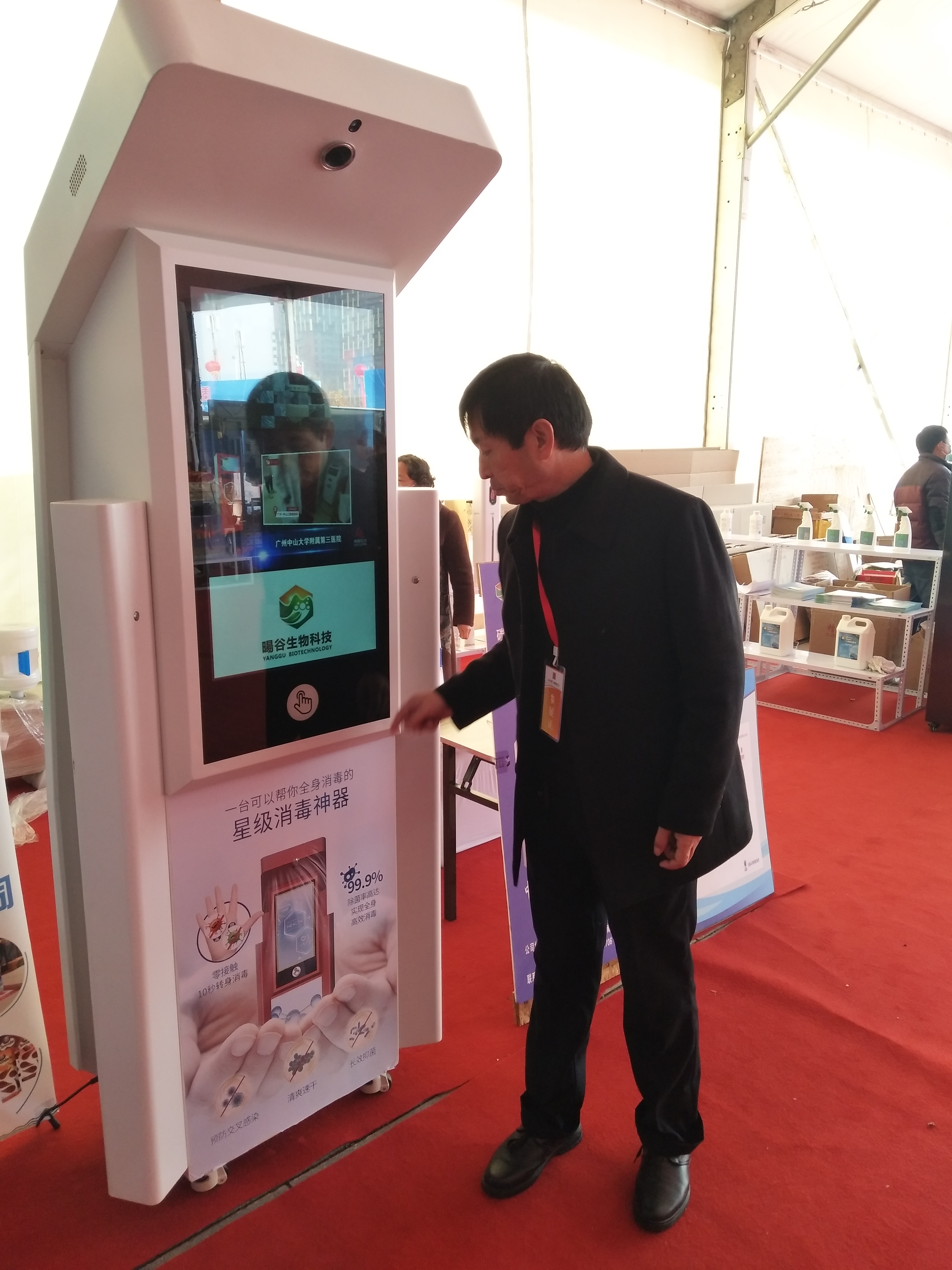 手掌往感控區(qū)上輕輕一罩,液晶屏四角就噴出霧化消毒液,大概持續(xù)10秒,足夠人轉(zhuǎn)一圈做周身消毒——在周商產(chǎn)品展示展覽大廳的西南角,北京陽谷生物科技有限公司市場部總監(jiān) 、項城人張清峰在介紹“人體感應(yīng)消毒機(jī)”,引得市民紛紛圍觀體驗。由于消毒液沒有異味,部分市民質(zhì)疑是清水,對此張清峰說:“我們用的是‘竹芳牌’碳酸型微酸性次氯酸消毒液,我們的消毒機(jī)主要是面向校園推廣的,給孩子用的東西除了要有效,還得保證安全溫和,碳酸型的消毒液就沒有這么大的刺激性?!睋?jù)張清峰介紹,“人體感應(yīng)消毒機(jī)”是今年五月下旬生產(chǎn)的新品,目前處在推廣階段,“當(dāng)?shù)弥芸谝k第一屆周商大會的消息,我第一時間想到要把消毒機(jī)展示給家鄉(xiāng)父老。我是個在北京打拼十多年的項城人,目前河南分公司由我負(fù)責(zé),項城市政府給了我很多支持?!?/p>