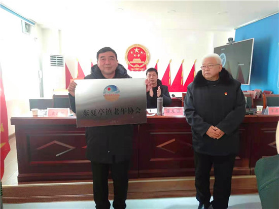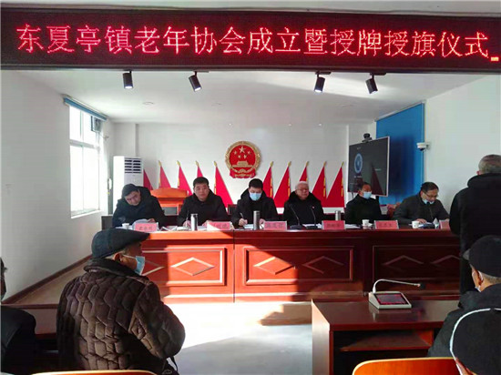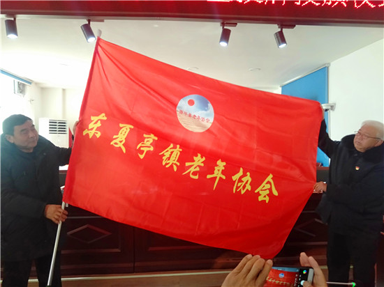 接著,張新芳代表縣老年協(xié)會向東夏亭鎮(zhèn)老年協(xié)會進行授牌授旗。