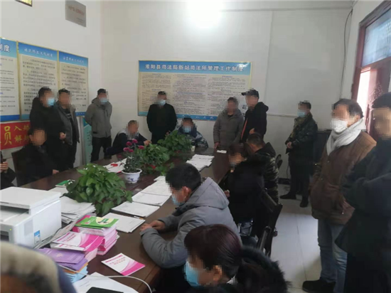 會(huì)上,新站司法所所長(zhǎng)胡劉偉宣讀了《致返周鄉(xiāng)親的一封信》和《淮陽(yáng)區(qū)春節(jié)返鄉(xiāng)隔離政策》,并對(duì)社矯對(duì)象進(jìn)行體溫測(cè)量,要求所有人員必須嚴(yán)格遵守疫情防控措施,服從當(dāng)?shù)卮逦瘯?huì)管理,確保自己及家人身體健康安全,隨后帶領(lǐng)社區(qū)矯正對(duì)象共同學(xué)習(xí)了《民法典》《中華人民共和國(guó)社區(qū)矯正法》部分章節(jié)內(nèi)容、疫情防控知識(shí)及相關(guān)法律法規(guī),同時(shí)向社矯對(duì)象強(qiáng)調(diào):一是定位手機(jī)要24小時(shí)開(kāi)機(jī),嚴(yán)格遵守請(qǐng)銷假制度;二是要增強(qiáng)自我約束能力,春節(jié)期間嚴(yán)禁酗酒鬧事,嚴(yán)禁酒后駕車,嚴(yán)禁從事賭博、尋釁滋事等違法犯罪行為;三是要加強(qiáng)春節(jié)期間安全防范意識(shí),堅(jiān)決打擊涉黑涉惡行為,遇到涉惡涉惡行為及時(shí)舉報(bào),同時(shí)要時(shí)刻保持清醒頭腦,切忌沖動(dòng),以平和的心態(tài)為人處事,確保度過(guò)一個(gè)安定祥和的春節(jié)。