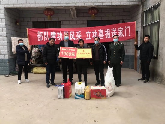 一人受獎,全家光榮;一人立功,全社會褒獎。1月21日,鄲城縣人武部和縣退役軍人事務(wù)局為全縣榮立二等功、三等功的軍人家庭送去立功喜報、慰問金和慰問品,向廣大軍人、軍屬送去黨和政府的溫暖和慰問,讓軍人軍屬共享立功受獎的榮耀和喜悅。