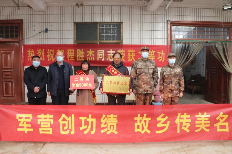 1月21日下午,太康縣高賢鄉(xiāng)保渡村現(xiàn)役軍人程勝杰家門前鑼鼓喧天,喜氣洋洋,熱鬧非凡。太康縣委常委、縣人武部部長于永前,政委郭立君,縣退役軍人事務(wù)局局長潘布道,高賢鄉(xiāng)黨委書記鄭宏等相關(guān)領(lǐng)導(dǎo)一行,為榮立二等功的程勝杰家屬送來了立功喜報、“二等功臣之家”牌匾及5000元慰問金。