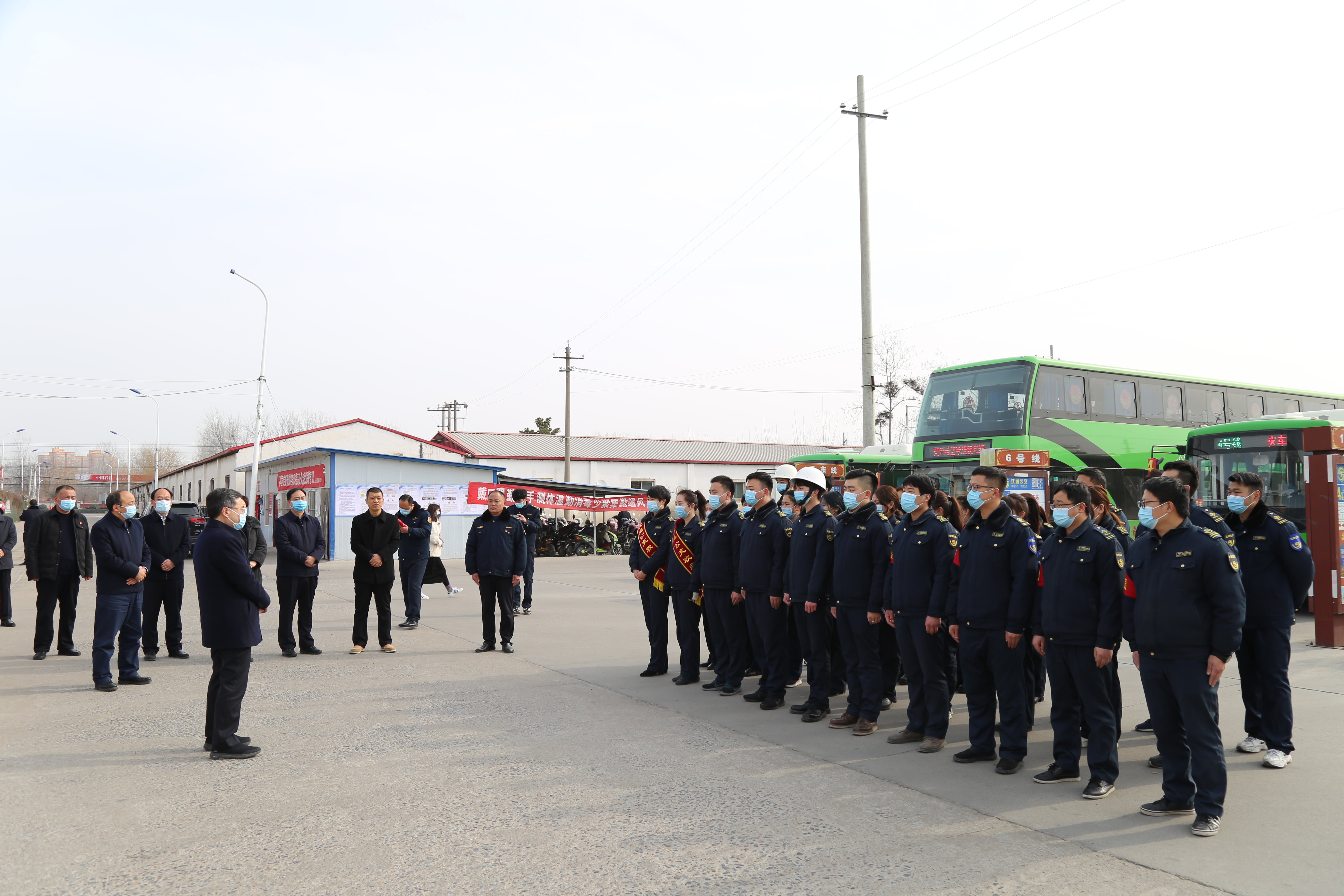 在縣公交公司,皇甫立新、劉國慶代表縣四個班子向堅守在一線的干部職工和公交司機致以節(jié)日的問候,對他們長期以來為我縣交通事業(yè)做出的貢獻表示感謝,并祝大家新春快樂,闔家歡樂。在認(rèn)真聽取相關(guān)負(fù)責(zé)人關(guān)于春節(jié)期間車輛運營和疫情防控等工作的匯報后,皇甫立新說,眼下,隨著春節(jié)臨近,人流量劇增,交通壓力和疫情防控壓力徒增,縣公交公司要繼續(xù)落實春節(jié)期間城區(qū)公交車免費乘坐惠民政策,在嚴(yán)格落實疫情防控措施的基礎(chǔ)上,根據(jù)春節(jié)期間人流特點,靈活調(diào)度車輛,合理安排各公交路線的車輛、臺數(shù)、營運車次,統(tǒng)籌做好高鐵站、火車站、汽車站等運輸點的接續(xù)接駁工作,優(yōu)化營運時間和發(fā)車頻次,尤其是高鐵夜班車的統(tǒng)籌安排,確保乘客安全到家,不滯留一位乘客。同時希望堅守崗位的公交職工要繼續(xù)提供優(yōu)質(zhì)服務(wù),文明安全駕駛,為全縣人民安全出行提供方便、搞好服務(wù)?;矢α⑿逻€叮囑公交公司負(fù)責(zé)人要合理安排好職工的工作和生活,為廣大一線工作人員安心工作提供堅實的后勤保障,讓他們更加舒心愉快地服務(wù)廣大群眾。