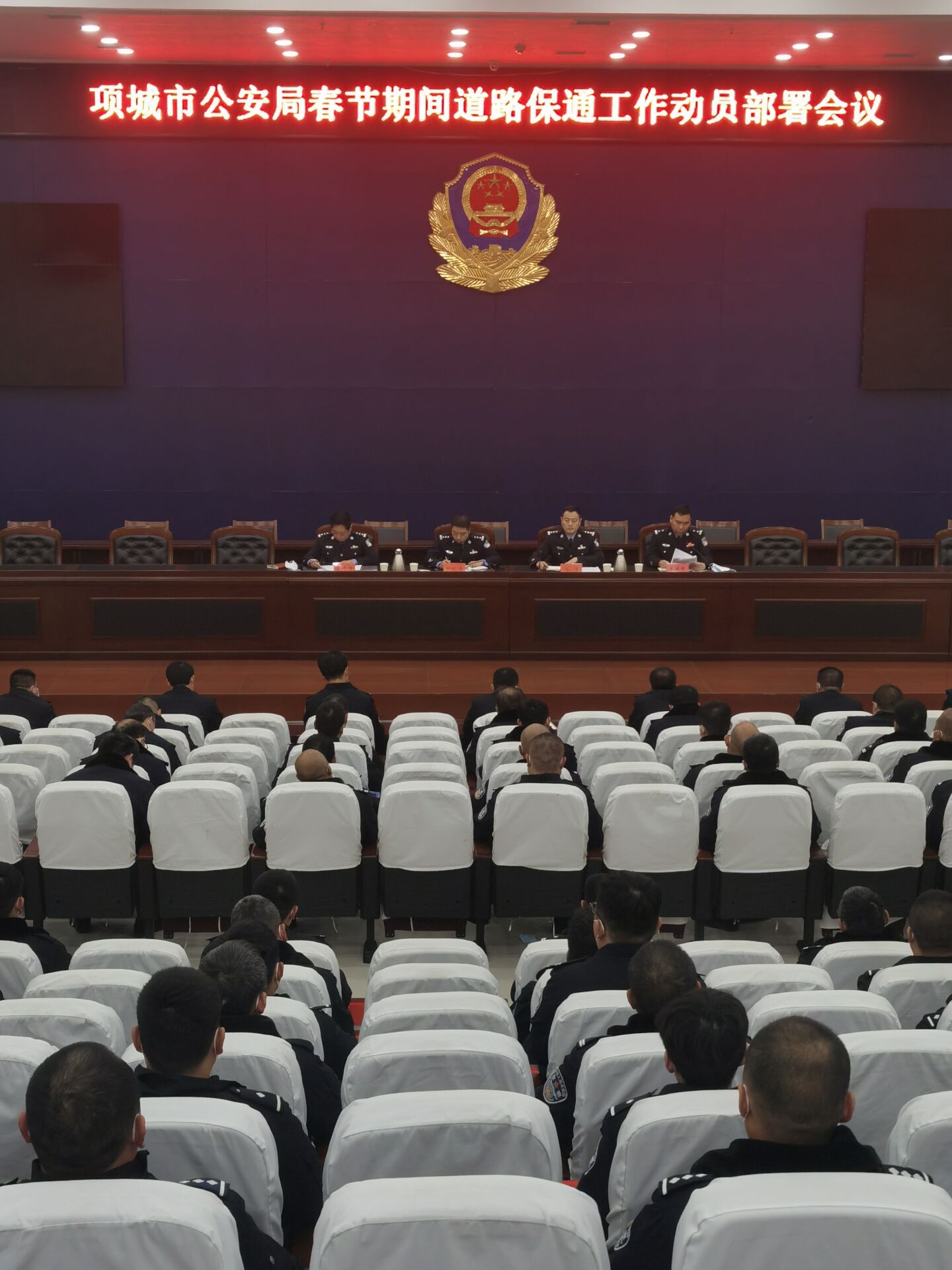 2月8日下午,項城市公安局在一樓會議室召開春節(jié)期間道路保通工作動員部署會議,對2021年春節(jié)期間道路保通工作進(jìn)行全面安排部署。副市長、公安局長萬東偉,局黨委副書記、副局長陳重,局黨委委員、副局長王貴峰出席會議,交警大隊和各鎮(zhèn)辦派出所負(fù)責(zé)人及交警大隊各中隊部分民警、輔警參加了會議。陳重主持會議。萬東偉在講話中指出,春節(jié)期間道路保通工作市委市政府領(lǐng)導(dǎo)高度關(guān)注、人民群眾熱切期盼,關(guān)乎全市人民福祉,關(guān)乎社會安全穩(wěn)定,各參戰(zhàn)單位要提升站位、細(xì)化措施、夯實責(zé)任、扎實工作,確保全市人民愉快度過安寧、祥和的新春佳節(jié)。萬東偉要求,一定要堅守崗位。堅決克服麻痹思想,堅守工作崗位,忠誠履行工作職責(zé),出色完成各項工作任務(wù)。一定要熱情服務(wù)。要把服務(wù)群眾理念貫穿始終,對群眾的報警、求助要第一時間到位,確保展開調(diào)查和救助,提升服務(wù)群眾水平,最大限度爭取群眾理解和支持。一定要規(guī)范執(zhí)法。絕不能對當(dāng)前的反腐形勢有模糊認(rèn)識,堅決做到廉潔公正執(zhí)法,牢固樹立公安良好形象,要加強(qiáng)法律法規(guī)學(xué)習(xí),時刻心存敬畏,堅守執(zhí)法底線,嚴(yán)防違紀(jì)違法的情況發(fā)生。一定要密切配合。各部門一定要有大局意識,牢固樹立一盤棋思想,相互配合,緊密協(xié)作,確保各項工作扎實有效開展。同時,要做好后勤保障和民警、輔警安全防護(hù)工作,堅決杜絕民警、輔警傷亡事件。