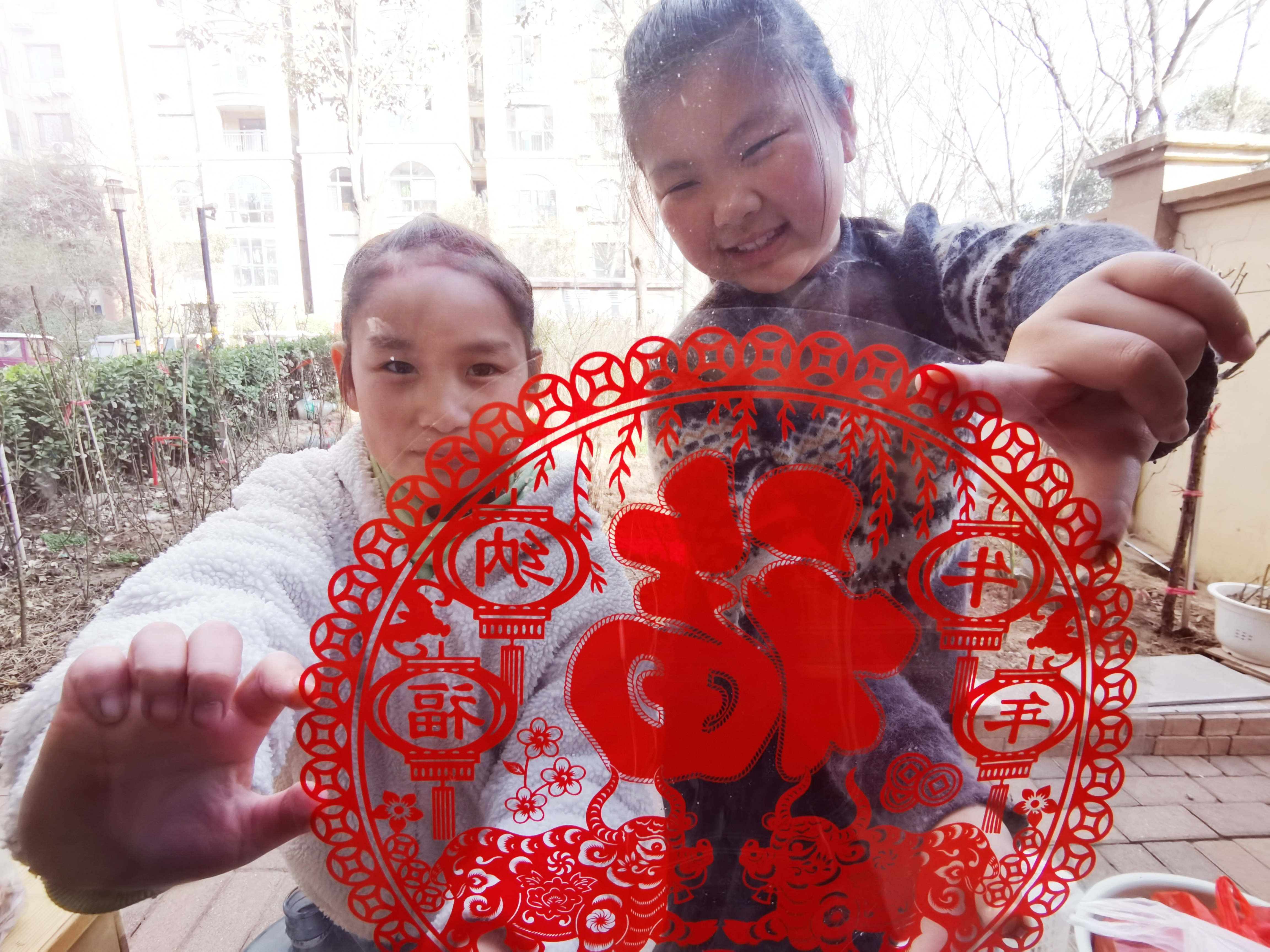 2月11日,小朋友在窗戶上貼窗花。今天是除夕,家家戶戶開始貼窗花、門對,掛燈籠,把家里裝扮得喜氣洋洋,準(zhǔn)備歡歡喜喜過大年。③5