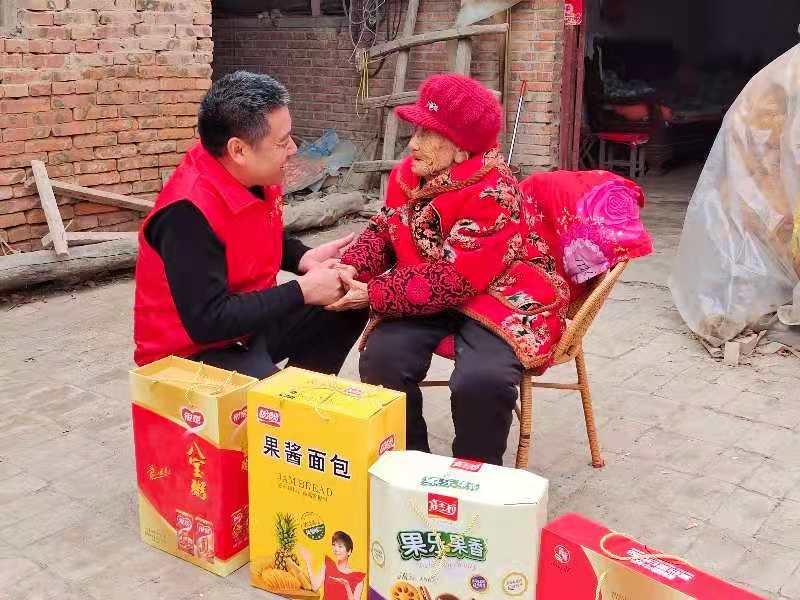 按照中國民間傳統(tǒng)習(xí)俗,新春伊始,人們都要穿戴新衣新帽走親訪友,拜年送祝福。2月12日,農(nóng)歷正月初一一大早,遜母口鎮(zhèn)心連心雷鋒服務(wù)隊(duì)隊(duì)長張新靜帶領(lǐng)志愿者張建設(shè)、劉賀敬、馮茹愿、賈衛(wèi)蒙、馮柯馨、歐樣等人就敲開了106歲的張占花家門。當(dāng)日,他們帶著核桃牛奶、面包、八寶粥,專門來為老人來拜年。 “新靜他們來了……”一聽聲音,張占花老人就猜到了是誰。經(jīng)過去年一年的幫扶,張新靜等人已經(jīng)與照顧占花老人成了“熟人”?!斑@些孩子們可沒少幫俺,又送物又幫俺打掃庭院”。看到志愿者們的到來,張占花老人的臉上掛滿笑容。