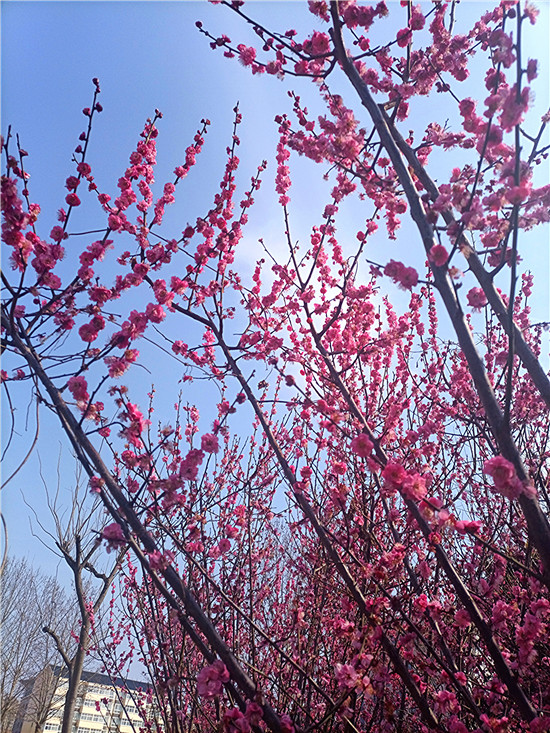 梅花,自古以來就是文人墨客筆下的???。有詩云:“春風(fēng)試手先梅蕊,頩姿冷艷明沙水?!泵坊軌蛄韬㈤_,兼具冷艷和嬌媚,被譽(yù)為花中四君子之首。近日,我市天氣晴好,公園內(nèi)、道路旁,一樹樹梅花開的熱熱鬧鬧、密密匝匝,令人感受到濃濃的春意和無盡的美好。