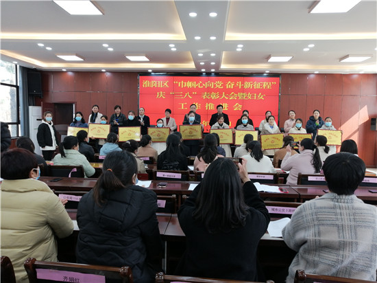 大會(huì)表彰了68名淮陽區(qū)“三八”紅旗手、50名淮陽區(qū)巾幗建功標(biāo)兵、10名淮陽區(qū)先進(jìn)婦女工作者、19名淮陽區(qū)農(nóng)村致富女能手、32名淮陽區(qū)抗疫巾幗先進(jìn)個(gè)人榮譽(yù)稱號(hào)、10個(gè)淮陽區(qū)“三八”紅旗集體、10個(gè)淮陽區(qū)巾幗文明崗、10個(gè)淮陽區(qū)先進(jìn)基層?jì)D女組織。