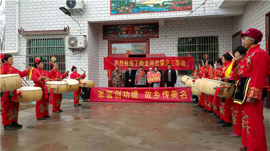 太康縣龍曲鎮(zhèn)的4名現(xiàn)役軍人在部隊榮立“三等功”,日前,太康縣龍曲鎮(zhèn)退伍軍人服務(wù)站站長、市人大代表劉志華在太康縣軍人事務(wù)局領(lǐng)導(dǎo)的帶領(lǐng)下,吹著嗩吶、打著腰鼓、扯著橫幅,把立功喜報和慰問金,送到龍曲鎮(zhèn)張山行政村張鵬舉、黑李王行政村丁帥龍、軒莊行政村師行光、河坡行政村王澤家中,營造了一人當(dāng)兵、全家光榮的風(fēng)尚,堅定了軍人建功立業(yè)的信心。