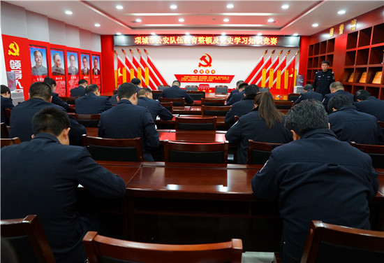 為進一步提升民警政治理論水平,切實加強隊伍教育整頓學(xué)習(xí)教育環(huán)節(jié)各項工作,結(jié)合當前實際情況,3月18日下午,項城市公安局精心組織開展隊伍教育整頓理論及學(xué)黨史知識競賽。局屬50余個單位各派民警代表參加了比賽,現(xiàn)場采取閉卷考試的方式進行。