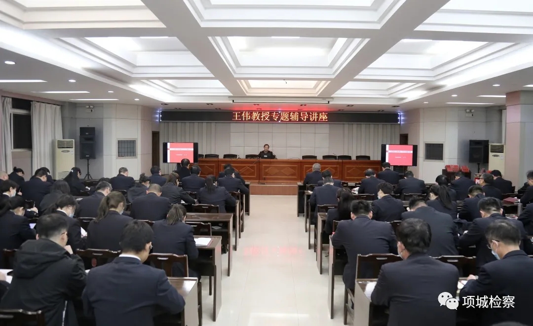 為推動檢察隊伍教育整頓學習教育環(huán)節(jié)往深里走、往實里去,3月22日晚,項城市檢察院邀請周口市委黨校副教授王偉到“檢察夜?!睘楦删M行黨建知識專題講座,夯實政治教育根基,提升干警思想政治素質(zhì)。王偉以《以黨建引領(lǐng)檢察工作高質(zhì)量發(fā)展》為題,從“背景闡釋:深刻認識黨建時代內(nèi)涵”、“歷史演進:準確把握基層組織作用”“路徑拓展:科學理解基層黨建手段”、“強發(fā)展、協(xié)調(diào)發(fā)展、高質(zhì)量發(fā)展。 王偉邊講解邊播放ppt課件。其報告主題鮮明、邏輯清晰,內(nèi)容豐富、語言生動,旁征博引、貫古通今,深入淺出、通俗易懂,讓干警美美享受一堂黨建教育“大餐”。