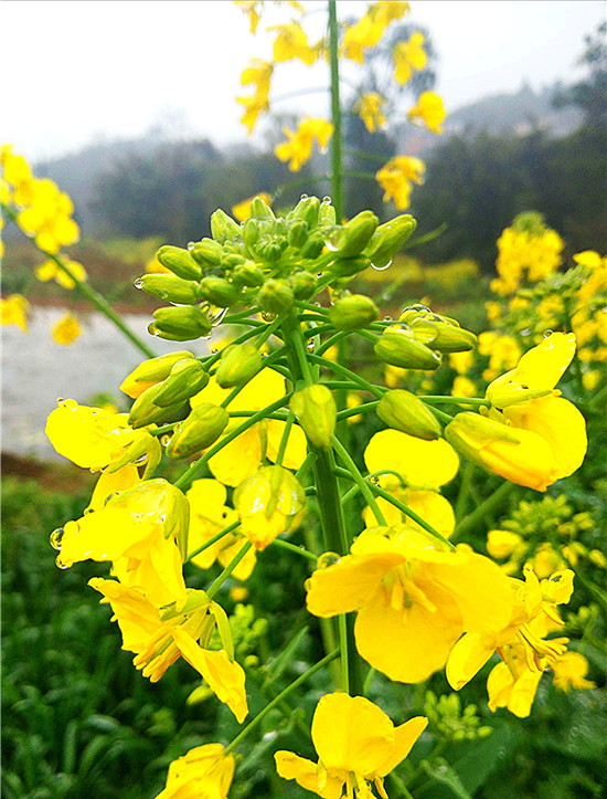 沙潁河岸邊的油菜花被細(xì)雨潤澤后格外精神,就像“加油”了一般。俗話說春雨貴如油。近日,我市下起了綿綿春雨,三川大地上比比皆是的油菜花釋放出勃勃生機(jī)。據(jù)了解,油菜花的花語就是“加油”,如此巧合,令人感嘆。①5