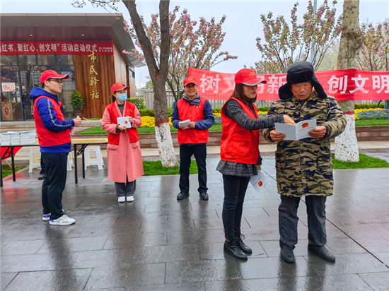 在活動(dòng)現(xiàn)場(chǎng),城管志愿者頭戴小紅帽,身穿紅馬甲,向過(guò)往群眾發(fā)放講解《周口市文明行為促進(jìn)條例》,耐心解答市民提出的問(wèn)題,以實(shí)際行動(dòng)倡導(dǎo)文明、傳播文明,展現(xiàn)城管志愿者的積極風(fēng)采和良好的精神風(fēng)貌。②10