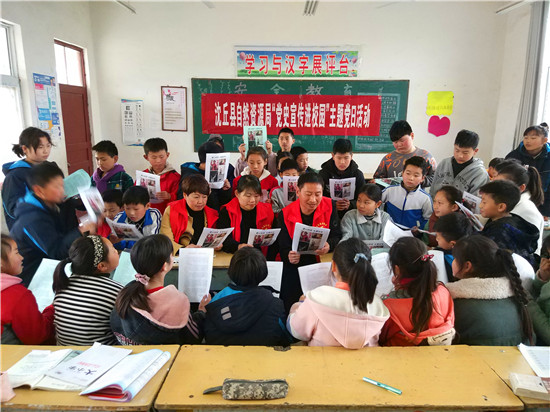 “同學(xué)們,我們?yōu)槭裁匆獙W(xué)習(xí)黨史呢?主要是學(xué)習(xí)黨史可以知興替、明得失、知源頭、明現(xiàn)在、感黨恩、明未來。百年黨史大致分為三個階段……”“我們中國共產(chǎn)黨的生日是哪天?”“黨徽是哪兩種圖案組成的?分別象征著什么?”這是4月7日,沈丘縣自然資源局走進(jìn)沈丘縣北城辦事處王浩莊小學(xué)開展“黨史宣傳進(jìn)校園”主題黨日活動的場景。