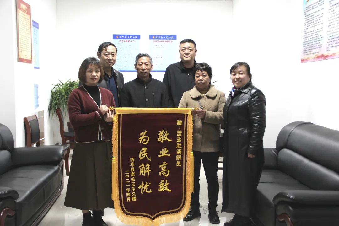 “要不是雷調(diào)解員出面調(diào)解,我的錢(qián)還不知道什么時(shí)候能要回來(lái)呢,這可幫了我們大忙……”4月13日上午,當(dāng)事人王某將一面印有“敬業(yè)高效 為民解憂”的錦旗送至西華縣法院政協(xié)委員調(diào)解員雷永勝手中,對(duì)其耐心高效的調(diào)解工作表示衷心感謝。