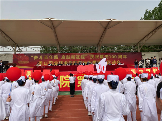 周口職業(yè)技術(shù)學(xué)院第十五屆田徑運(yùn)動(dòng)會(huì)開幕式現(xiàn)場(chǎng)