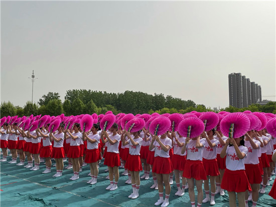 開幕式還舉行了彩扇舞、啦啦操、中國(guó)功夫、歌曲等文體表演。其中,彩扇舞《盛世花開》,由該校文化教育學(xué)院300名女生手持彩扇,跟隨著不同的音樂節(jié)奏變換著不同的色彩與隊(duì)形,依次拼出由鐮刀和錘頭組成的中國(guó)共產(chǎn)黨黨徽、象征體育精神的奧運(yùn)五環(huán)、“慶祝建黨100周年”、“周職20周年校慶”等圖形和字樣,表達(dá)著對(duì)黨的熱愛和對(duì)學(xué)校的祝福。表演者王真真說:“大家協(xié)同配合才能把節(jié)目表演好,這個(gè)節(jié)目我們排練了一個(gè)多月。雖然很辛苦,但是看到節(jié)目順利演出,感到很有成就感。”