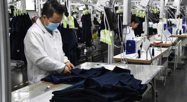 • ?9月12日,一家服裝加工企業(yè)車間內(nèi),工人們?cè)谮s制訂單。