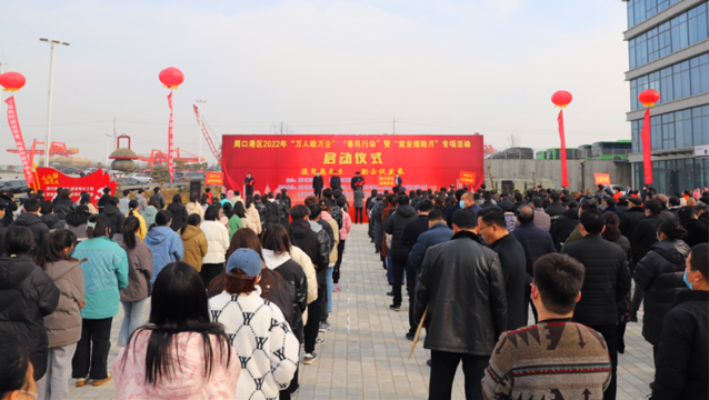 • 2月22日,周口港區(qū)舉辦2022年“萬人助萬企”“春風(fēng)行動(dòng)”暨“就業(yè)援助月”啟動(dòng)儀式,通過舉辦一系列活動(dòng),為企業(yè)和求職者牽線搭橋。港區(qū)黨委書記孫鵬宣布啟動(dòng)儀式開幕,管委會(huì)主任胡軍華在儀式上致辭,港區(qū)領(lǐng)導(dǎo)杜廣賢、劉學(xué)慶、李素芹參加活動(dòng)。