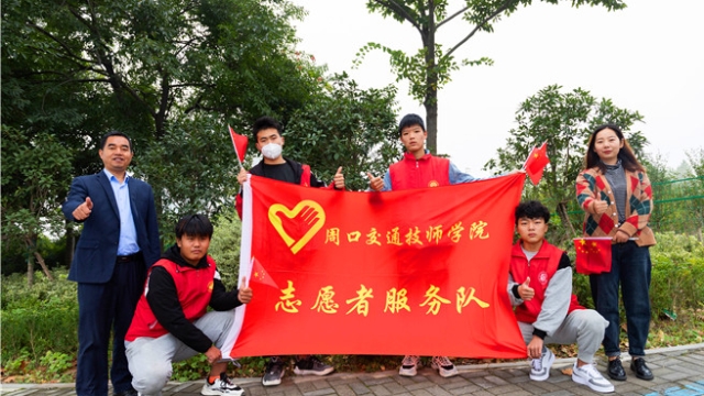 近日,在周口城鄉(xiāng)一體化示范區(qū)人和路和平安路交匯口,一群身穿印有“周口交通技師學(xué)院”字樣紅色馬甲的忙碌身影引來(lái)眾多路人注目。
