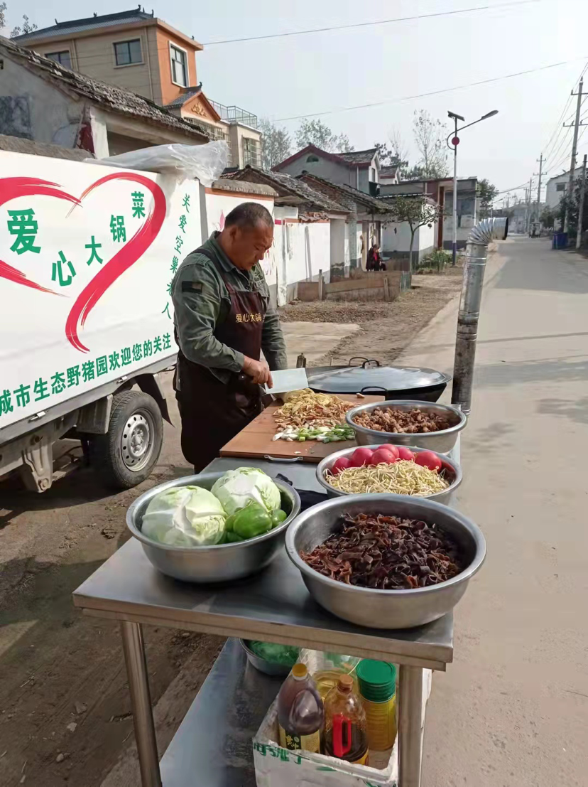 韓洪偉,項(xiàng)城市王明口鎮(zhèn)人,今年45歲,他和妻子經(jīng)營(yíng)一家黑豬養(yǎng)殖場(chǎng),他就是愛(ài)心大鍋菜的掌勺師傅?!爱?dāng)神州大地被突如其來(lái)的新冠肺炎疫情肆虐時(shí),我就想去獻(xiàn)愛(ài)心,就想給奮戰(zhàn)在一線的人做大鍋菜,但是由于疫情封控等種種原因,一直沒(méi)能實(shí)現(xiàn)?!表n洪偉說(shuō)。今年農(nóng)歷八月十六這一天,韓洪偉和表弟田恒昌、嫂子田紅梅一起組成了愛(ài)心大鍋菜小分隊(duì),在親朋好友的的支持下開(kāi)始了他們的“愛(ài)心事業(yè)”。據(jù)韓洪偉介紹,田恒昌斥資2萬(wàn)多元購(gòu)買(mǎi)一輛二手廂式貨車(chē),并花了1000多元購(gòu)買(mǎi)了鍋灶和不銹鋼案板,韓洪偉每天拿出自家養(yǎng)的黑豬肉三四十斤,田紅梅則打下手做飯,捎帶著平時(shí)買(mǎi)個(gè)油鹽醬醋……