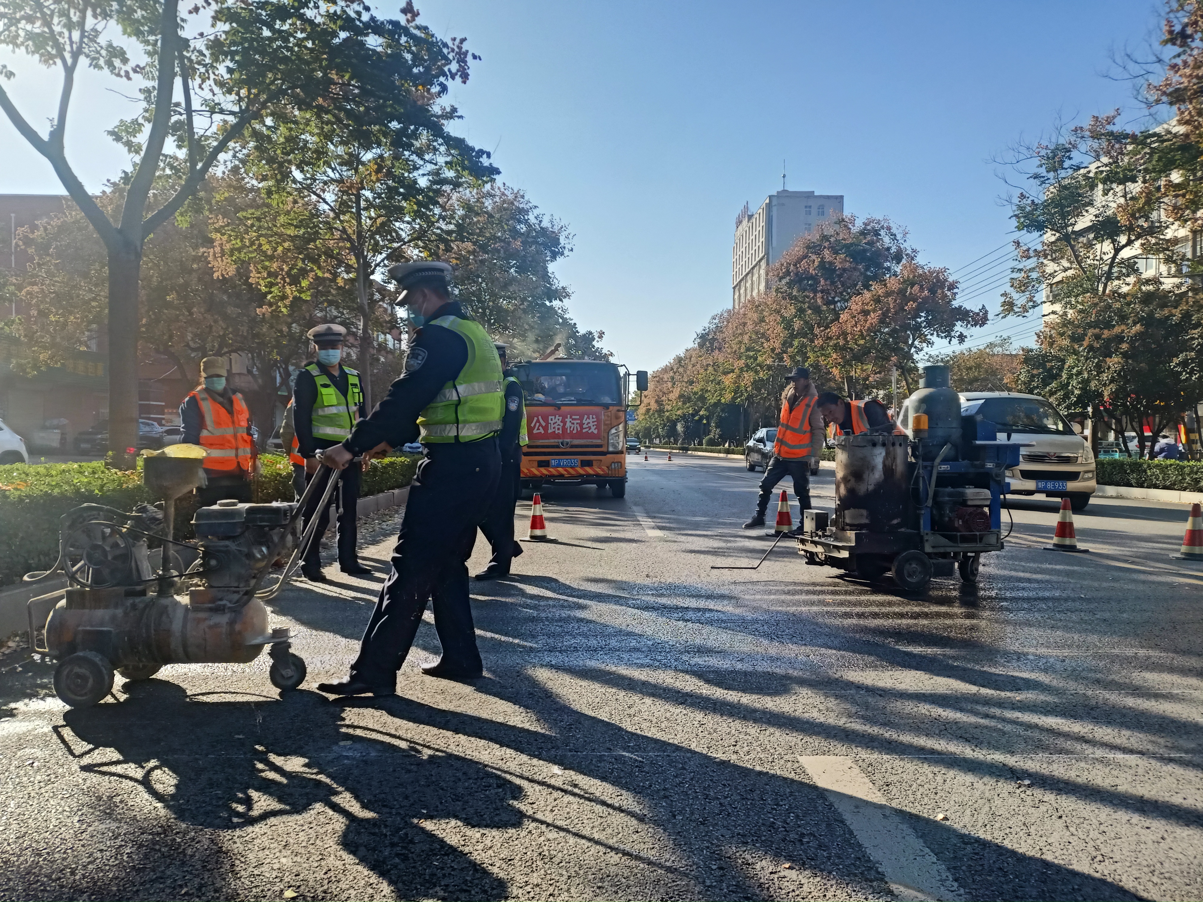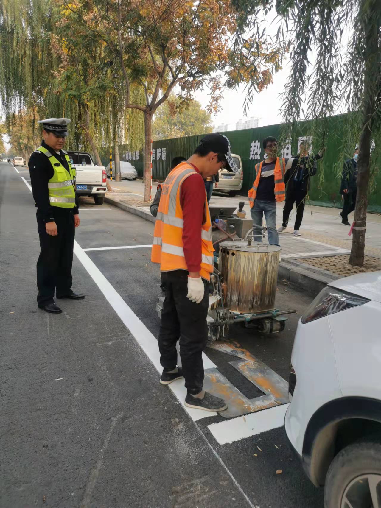 當(dāng)日下午,記者在黃河路看到,施工人員正在熟練地操作標(biāo)線機(jī),認(rèn)真細(xì)致地施劃減速震蕩標(biāo)線。市公安局交通管理支隊設(shè)施維護(hù)中心(以下簡稱設(shè)施維護(hù)中心)工作人員黃勇說:“在創(chuàng)文期間,設(shè)施維護(hù)中心加大對道路護(hù)欄的清洗力度,完善交通信號燈的維護(hù),清除學(xué)校門口不合理的停車位,修剪遮擋交通設(shè)施的樹枝,排除路口的交通隱患?!?/p>