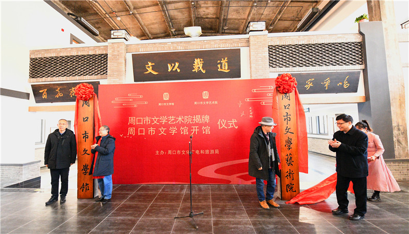 市領(lǐng)導(dǎo)王少青、梁建松和周口籍著名作家劉慶邦、墨白為市文學(xué)館、市文學(xué)藝術(shù)院揭牌