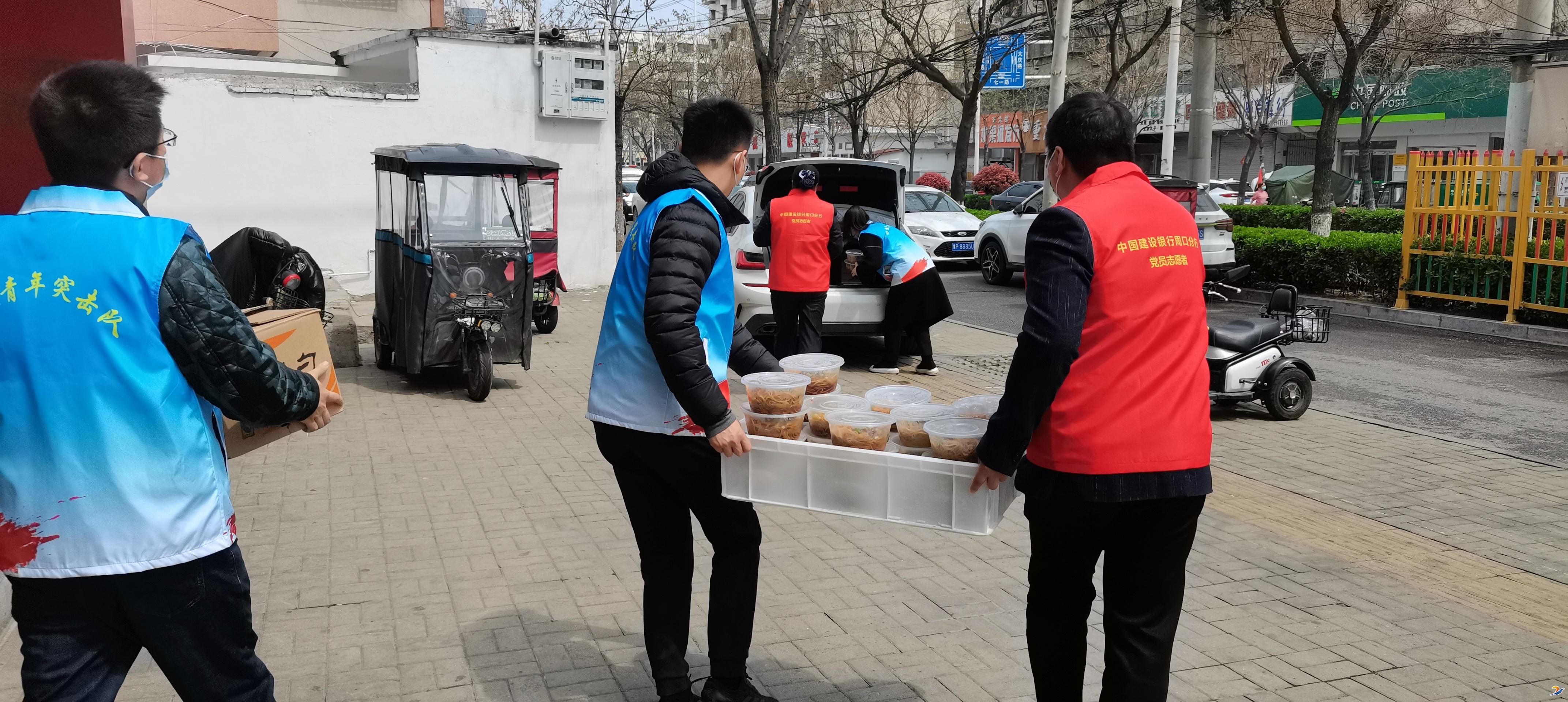 建行周口分行團(tuán)委書記張聰穎說:“疫情發(fā)生后,我們建行就一直想為疫情防控貢獻(xiàn)力量,得知咱們的卡點(diǎn)工作人員吃飯成了問題,就組織我們的青年志愿者和愛心餐飲店一起開展了這次愛心送餐活動(dòng)。我們將持續(xù)為抗擊疫情作出貢獻(xiàn),也相信通過大家的共同努力,疫情會(huì)早日過去。”(周建行)②8