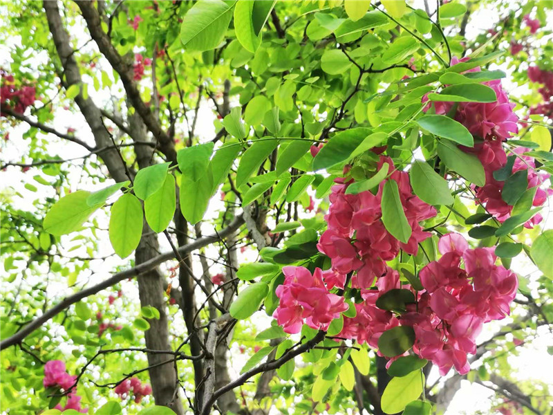 “槐林五月漾瓊花,郁郁芬芳醉萬家?!毖巯?,在周口濱河公園,紅色的槐花怒放,芳香四溢,惹人心醉。陽光下,一串串、一簇簇、一樹樹槐花隨風(fēng)搖曳,美不勝收。周口日報·周道客戶端記者 普淑娟 攝