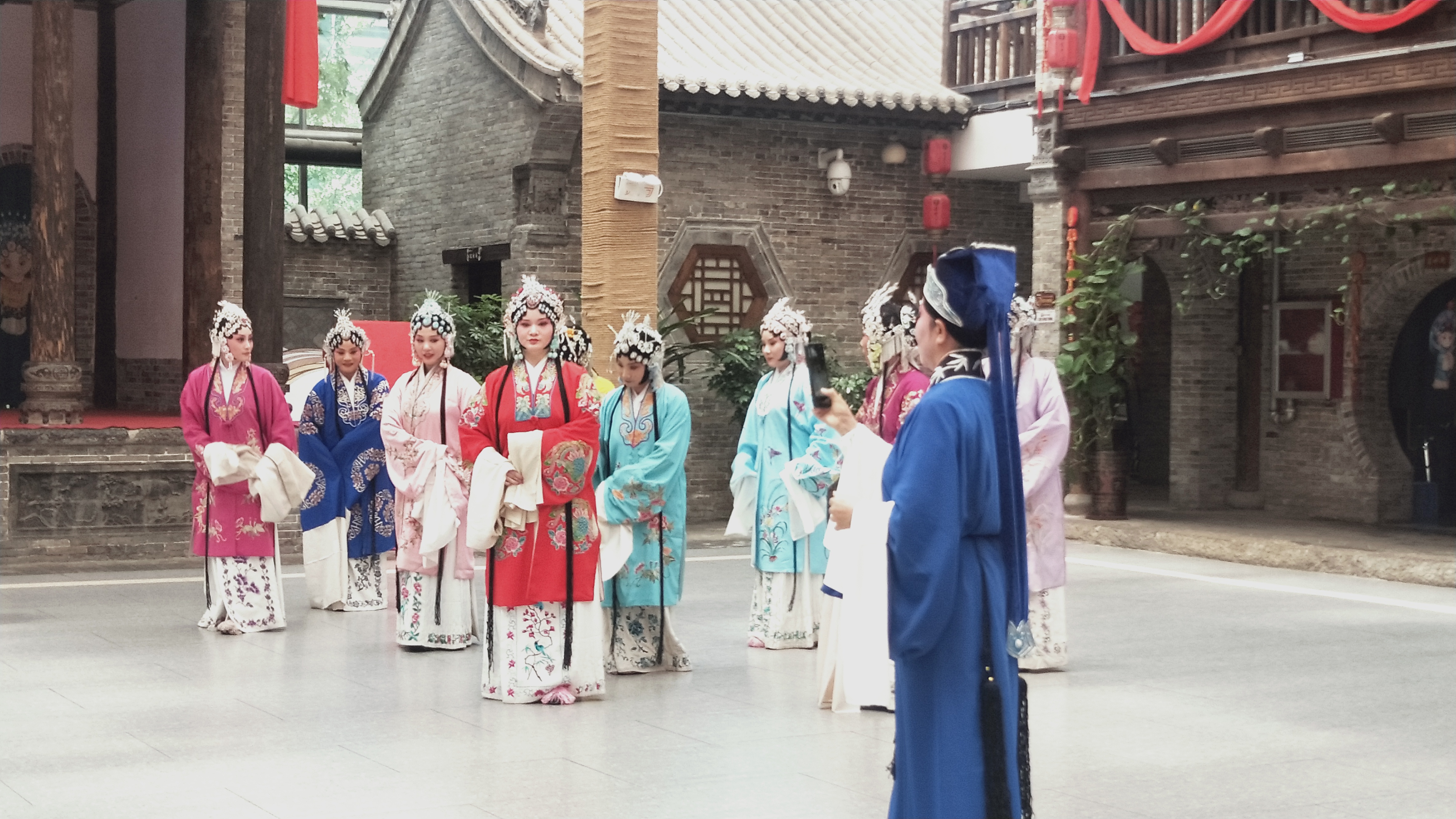 ?8月3日上午,市豫劇團(tuán)團(tuán)長、戲劇藝術(shù)家肖秀蓮帶領(lǐng)演員們在建業(yè)大食堂演出《五世請纓》中的《一家人歡天喜地》一折。