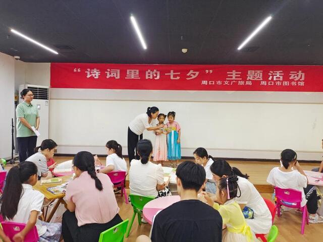 七夕今宵看碧霄,牽牛織女渡河橋。8月20日,一場別開生面的“詩詞里的七夕”主題活動(dòng)在周口市圖書館青少年活動(dòng)中心舉行。書香覓詩詞、同心題詩詞、粘土畫詩詞……參與的孩子在詩情畫意中感受到中華傳統(tǒng)節(jié)日的內(nèi)涵。