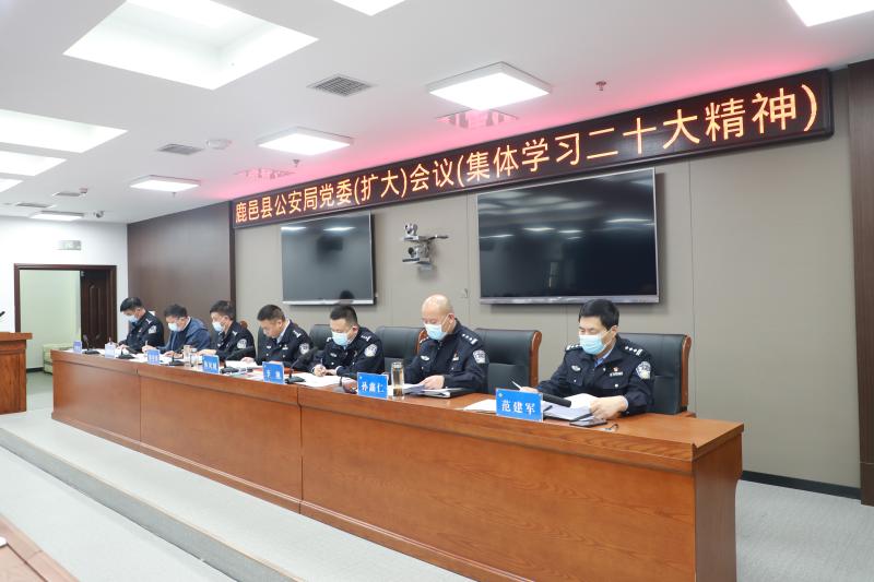 11月3日下午,鹿邑縣公安局組織召開黨委(擴大)會議,對黨的二十大、二十屆一中全會精神進行專題學(xué)習(xí)。鹿邑縣副縣長、公安局黨委書記、局長韓鳳城主持會議,局黨委班子成員,各科所隊室負(fù)責(zé)人、刑警各中隊負(fù)責(zé)人參加會議。