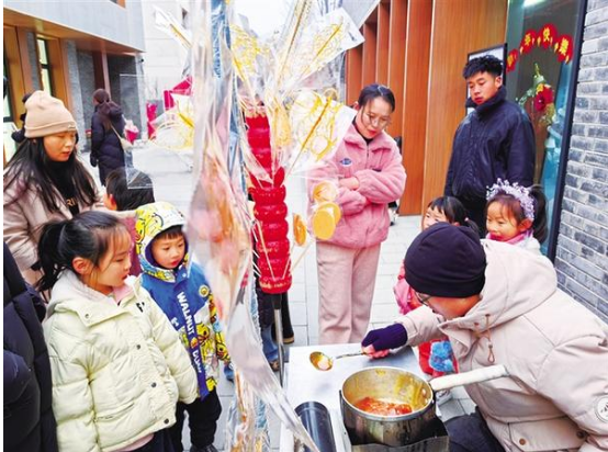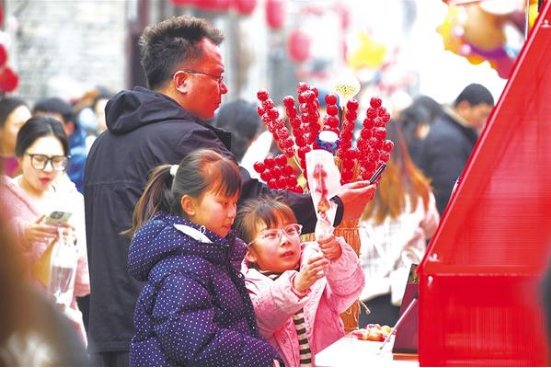 近日,周家口南寨歷史文化街區(qū)擊鼓開街,第三屆“三川十館·春會(huì)”同步啟幕。街巷深處,兩位小朋友在家長(zhǎng)陪同下挑選冰糖葫蘆,笑語(yǔ)盈盈。
