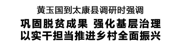 本報(bào)訊 (記者 王艷) 12月7日,市委書記黃玉國到太康縣調(diào)研基層治理、鞏固拓展脫貧攻堅(jiān)成果同鄉(xiāng)村振興有效銜接等工作,強(qiáng)調(diào)要深入學(xué)習(xí)貫徹黨的二十屆四中全會(huì)精神和習(xí)近平總書記關(guān)于河南工作的重要論述,認(rèn)真落實(shí)省委十一屆十次全會(huì)部署,堅(jiān)持學(xué)思想、講協(xié)同、抓落實(shí),以黨建引領(lǐng)基層高效能治理,以精準(zhǔn)舉措鞏固拓展脫貧攻堅(jiān)成果,以實(shí)干擔(dān)當(dāng)推進(jìn)鄉(xiāng)村全面振興,持續(xù)增強(qiáng)人民群眾的獲得感、幸福感、安全感。