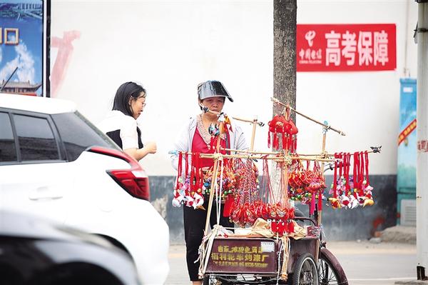 6月5日,一名婦女正在淮陽(yáng)城區(qū)街頭銷售香囊。端午節(jié)將至,香囊成了街頭巷尾的一道亮麗風(fēng)景。香囊里填充有艾葉、丁香、白芷等中草藥,散發(fā)出淡淡的清香,不僅能驅(qū)蚊蟲、避瘟疫,還寓意著祈福納祥、健康平安。 ...[詳細(xì)]