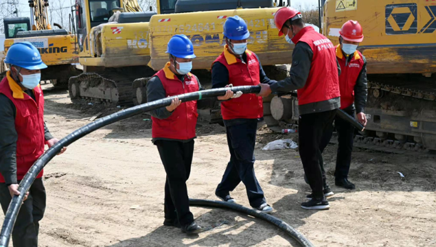 3月25日,在太康縣北環(huán)路核酸檢測(cè)方艙和隔離方艙建設(shè)現(xiàn)場(chǎng),國(guó)網(wǎng)太康縣供電公司工作人員正冒雨施工為其提供電力保障。