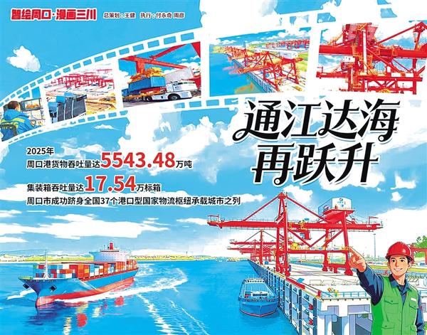 2025 年,周口港交出亮眼答卷:貨物吞吐量 5543.48 萬(wàn)噸、集裝箱吞吐量 17.54 萬(wàn)標(biāo)箱,兩項(xiàng)數(shù)據(jù)雙雙創(chuàng)下歷史紀(jì)錄,躋身全國(guó) 37 個(gè)港口型國(guó)家物流樞紐承載城市。