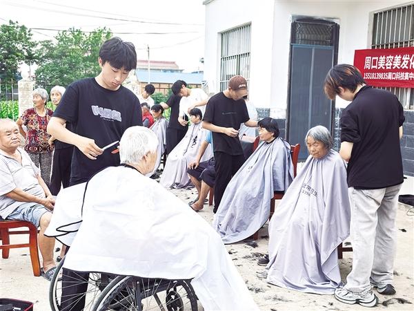 “我還是頭一次享受理發(fā)師上門服務(wù),太高興了?!?月30日下午,沈丘縣卞路口鄉(xiāng)張保元村村民馬桂榮撫摸著剛剪過的頭發(fā),臉上樂開了花。當(dāng)日,張保元村駐村第一書記劉會見組織周口科技職業(yè)高中的劉宇、李杰等7名志愿者來到張保元村開展義剪活動。
