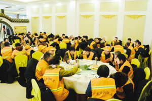 本報(bào)訊 (記者 徐啟峰 通訊員 劉巍 文/圖) 2月17日,農(nóng)歷臘月二十九上午,愛心人士韓平為川匯區(qū)環(huán)衛(wèi)工人送去棉大衣,并邀請環(huán)衛(wèi)工人共進(jìn)午餐(如圖)。