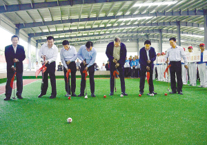 本報(bào)訊 (記者 李鳳霞 宋馨 沈湛 文/圖) 5月5日上午,“中國體育彩票杯”河南省第十二屆老年人體育健身大會(huì)門球交流活動(dòng)在周口體育中心門球館舉行。省老年體協(xié)主席馬憲章,省體育局局長張文深,市委書記、市人大常委會(huì)主任徐光,市長劉繼標(biāo),正市長級(jí)干部李紹彬,市人大常委會(huì)副主任、市老年體協(xié)主席游保峰,省老年體協(xié)副主席王瑋等領(lǐng)導(dǎo)共同為活動(dòng)開球(如圖)。